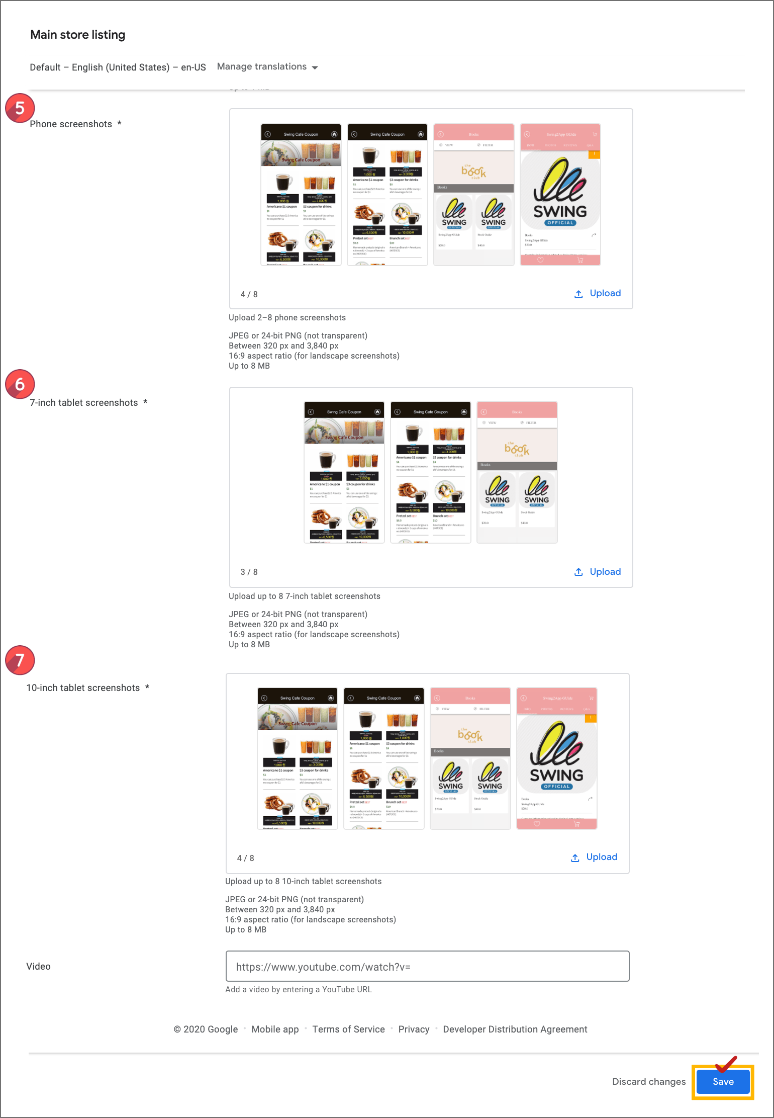 All items 5, 6, and 7 are for registering screenshot images. Please register with the same image.