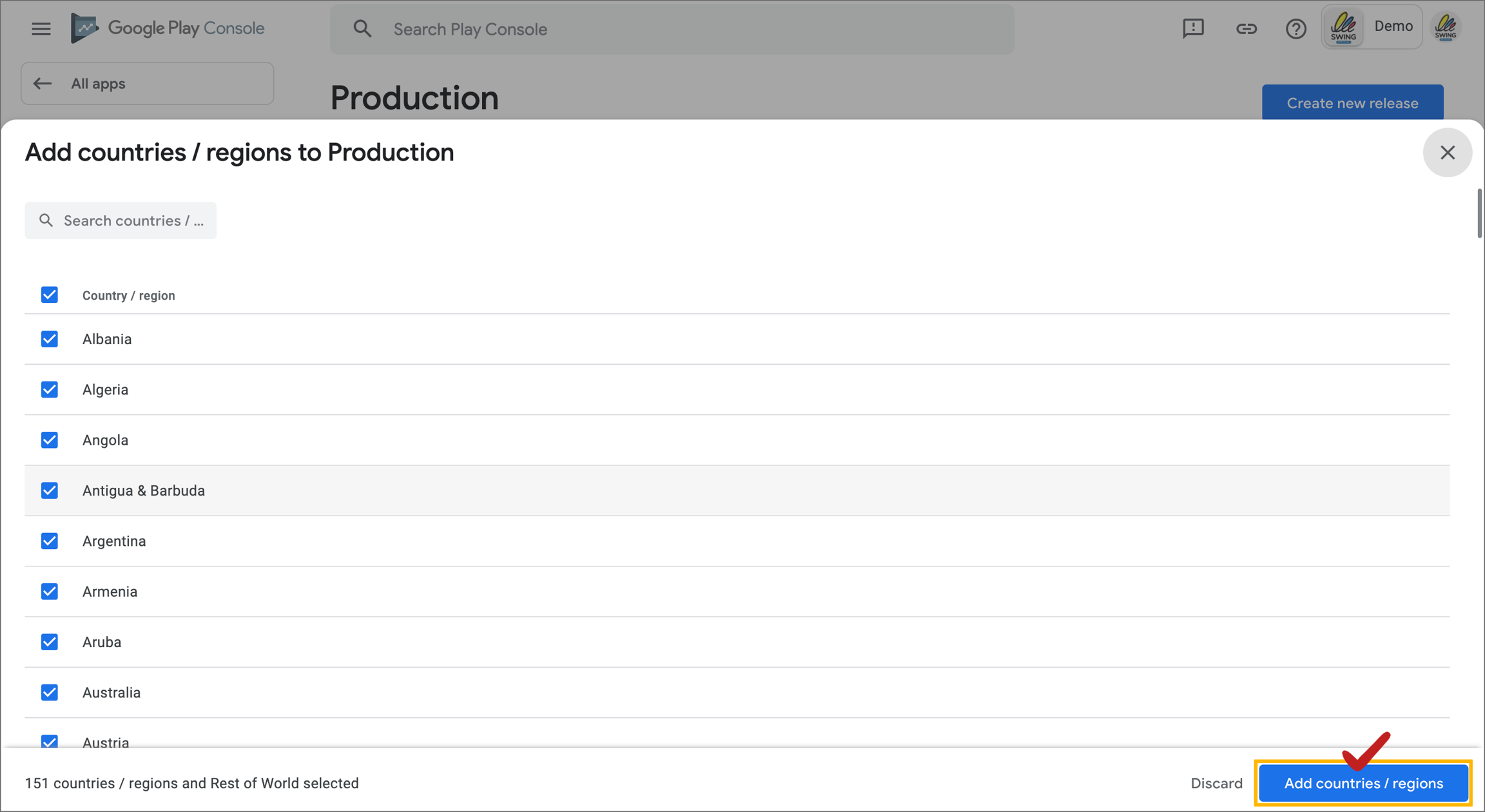 Select the [Add Countries/Regions] button.