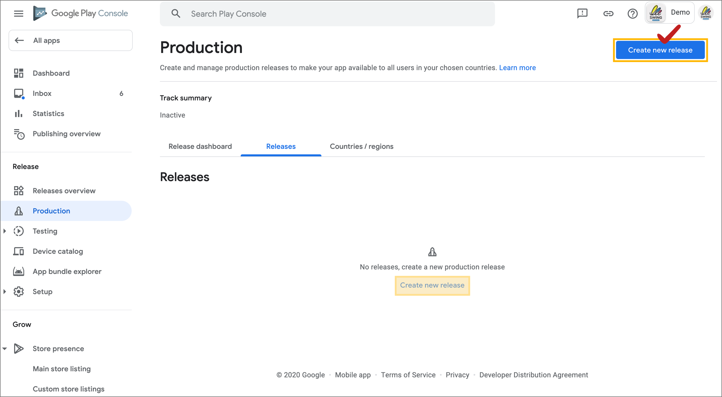 Select the [Start release with Production track] button → Select the [Release] button in the production track release message window.