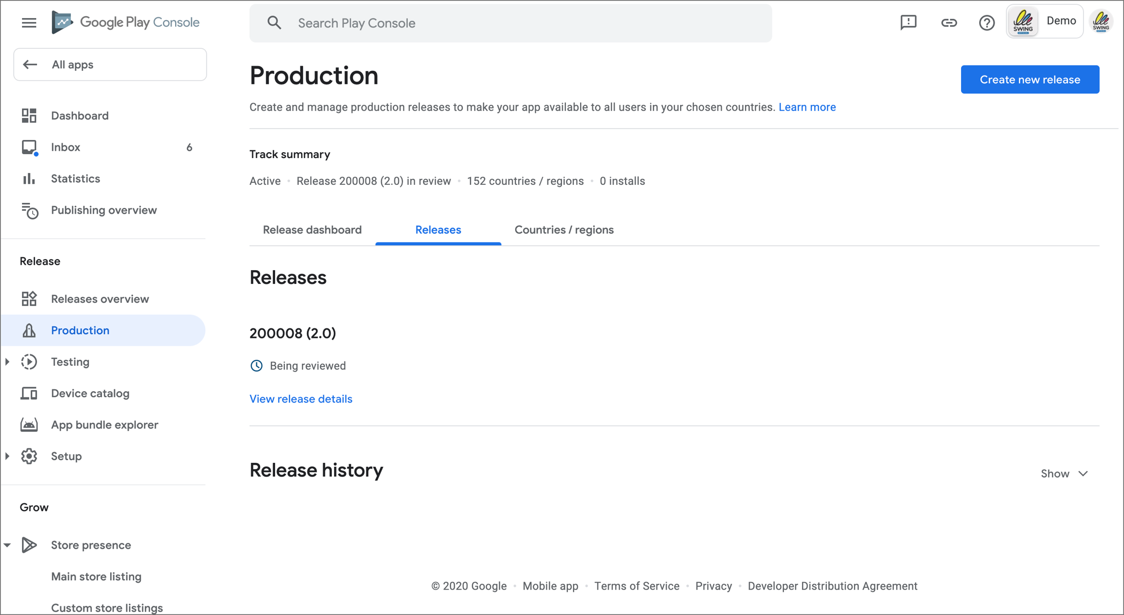 Registration is complete. If you look at the release screen again, you can see that it is marked as ‘Being Reviewed’.