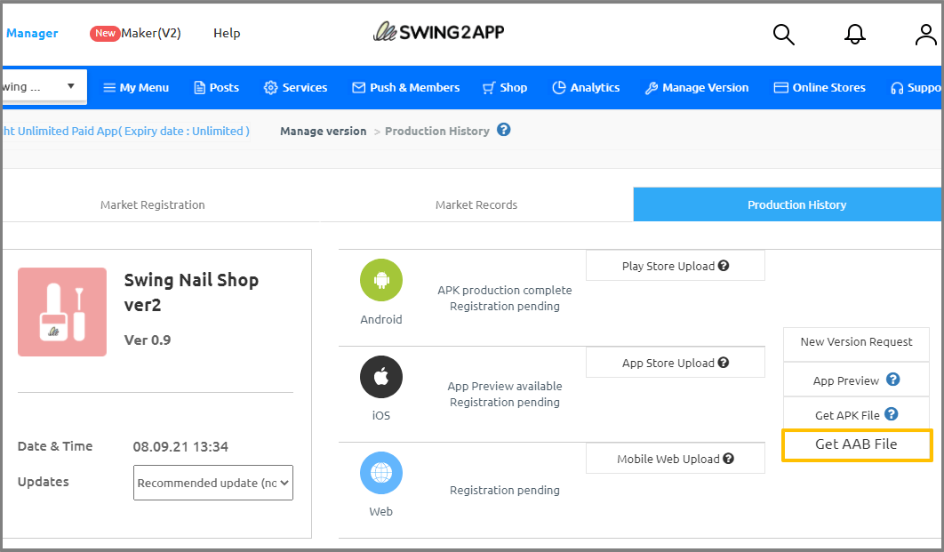 AAB files are created from apps created after August 9, 21 in Swing2App.