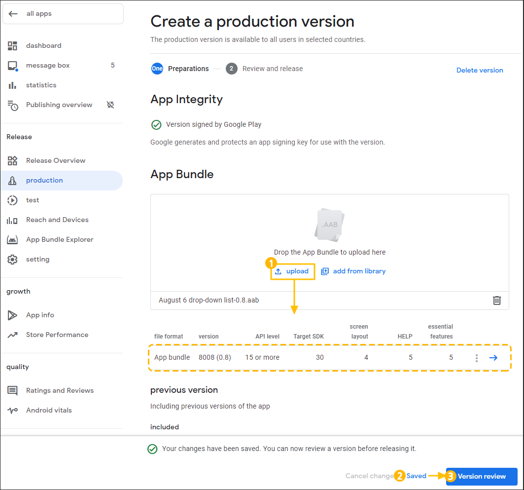 3. Production release – AAB file Upload