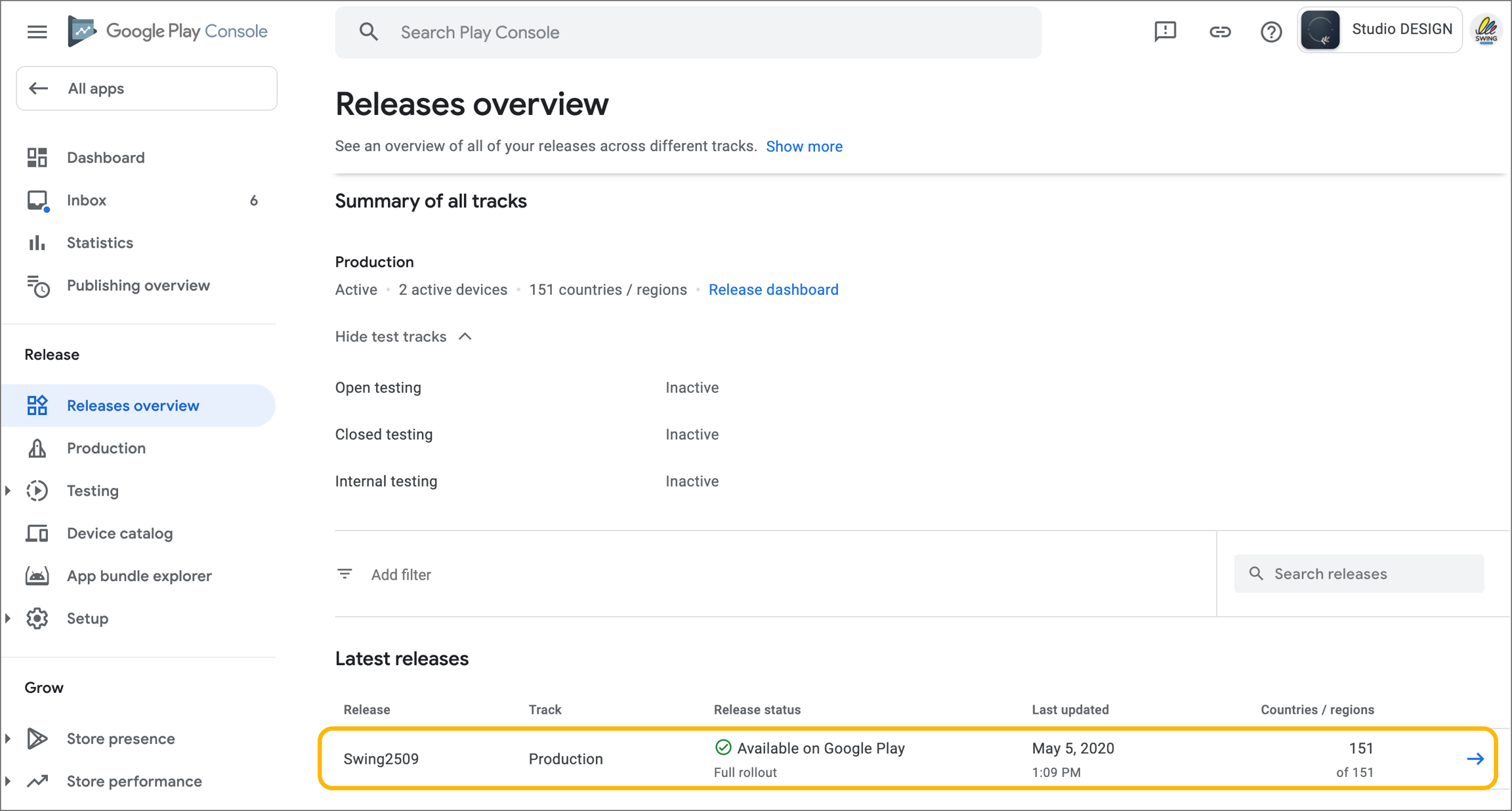 Select the [Start Release with Production Track] button and you are done.